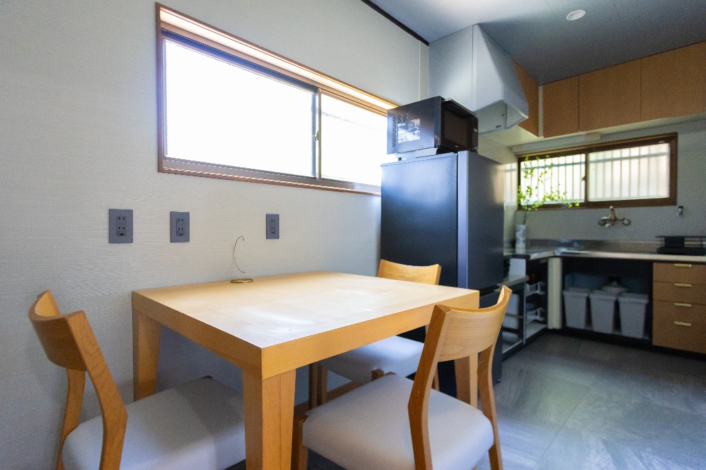 敷地内にアッパーテラス、シェアダイニングルーム、シェアキッチン、プロジェクター、コピー機有